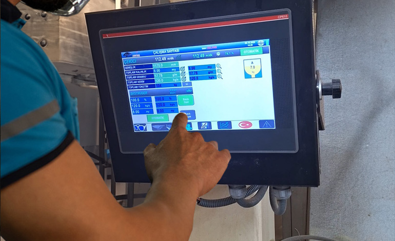 Hazırlanmış karışım besleme ünitesinden makineye beslenir.